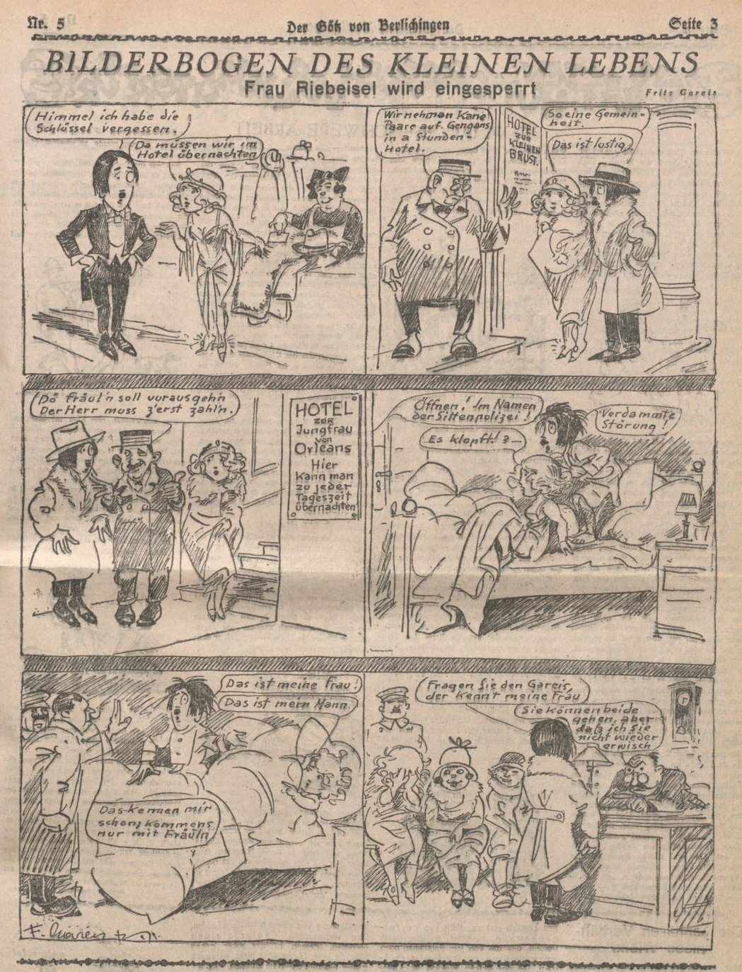 “Frau Riebeisel gets locked up.” Der Götz von Berlichingen 30 Jan. 1925, p. 5. ANNO / Österreichische Nationalbibliothek.